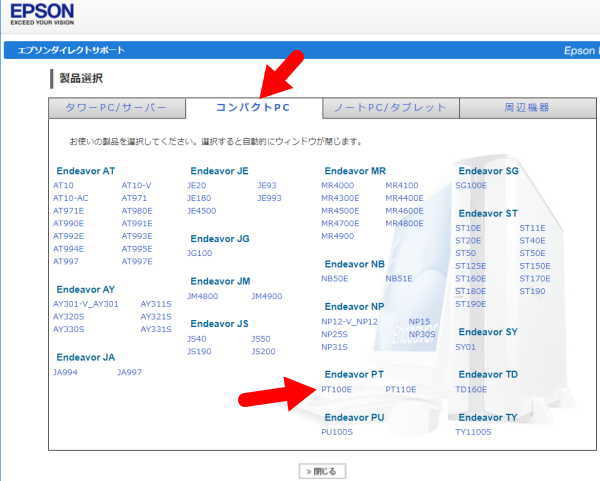 EPSON モデル名:Endeavor PT100E 製造期間 2013年1月~2014年4月 |