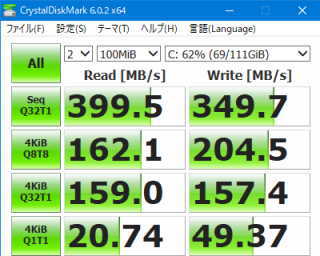 - 唯一の不満点は、SSDやHDDを接続するインターフェースが SATA2(300MB/s)なので、転送速度が遅い。最近の規格はSATA3(600MB/s)が普通。