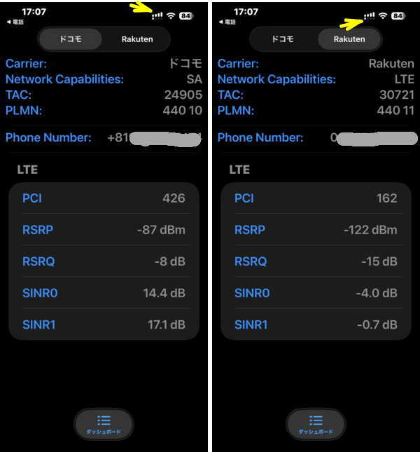 iPhone で 電波の強さ や 品質 を数字(デシベル数 dBm)で確認する方法