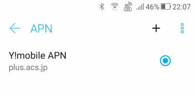 「アクセスポイント名」をタップするとAPN一覧の画面が出ます。