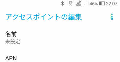機種によっては右端のメニューアイコンをタップして「新しいAPN」をタップすると