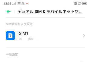 - 「SIMカードおよびモバイルデータ」の画面に戻り