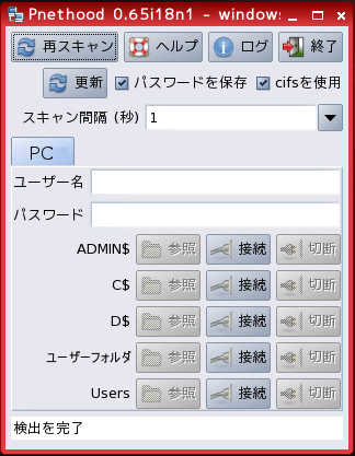 - ネットワーク上に見つかったパソコン毎にタブに分かれて表示されます。
