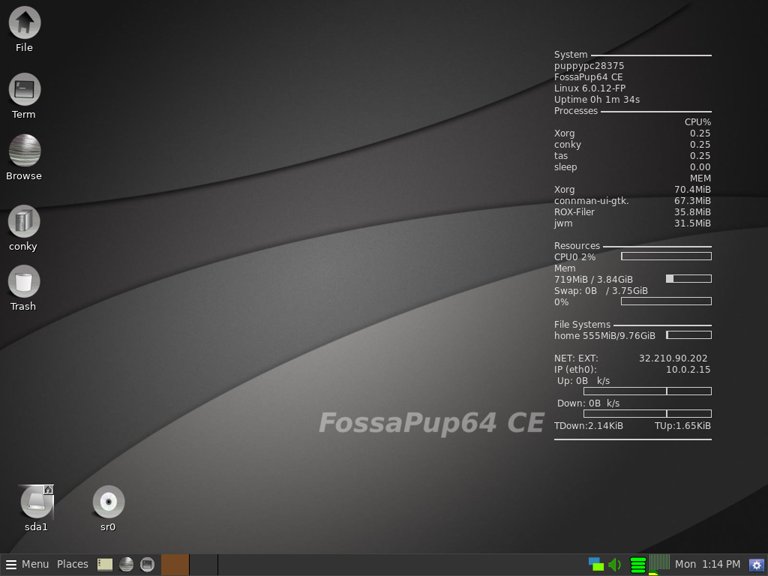 - FossaPup64 CE をベースにした、フル機能、無料、レスポンシブなPuppy Linuxオペレーティングシステムです