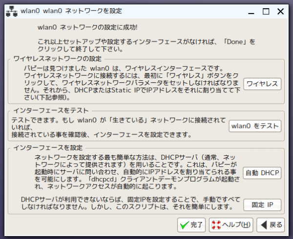 - ワイヤレスの行をクリックして選択し「wlan0」をクリックします。