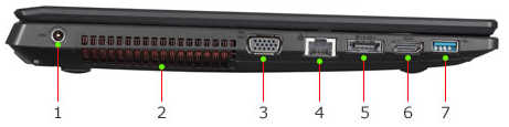 ③VGA ポート、④LAN端子、⑤eSATA ポート(USB2.0兼用)