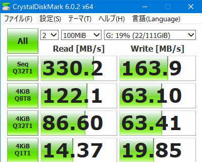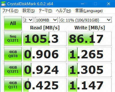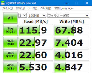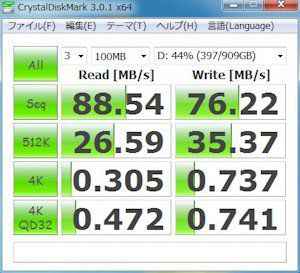 接続するパソコンのUSB3.0の性能により値はだいぶ変化しますので、参考程度にしてください。