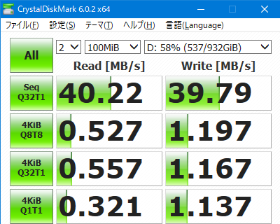 読み込み・書き込み共にかなり速度低下が発生しました。