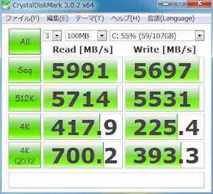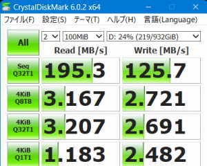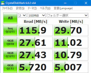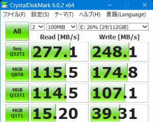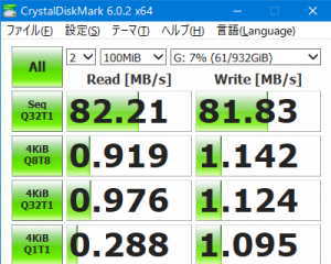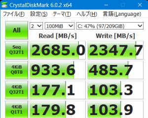 CrystalDiskMark Ver6.0.2(64Bit)を使用して測定