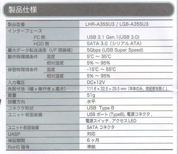 - 2.5/3.5インチ用 ロジテック製 LHR-A35SU3(専用電源が必要)