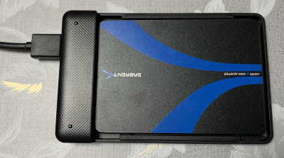 2.5インチのHDD/SSD をUSB3.0 変換ユニットに取り付けた時のベンチマークを測定。