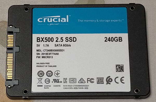 中国製の安い商品を 楽天市場にて購入 Crucial BX500 CT240BX500SSD1 SATA 6.0Gb/s 内蔵2.5インチ 7mm 保証期間 3年 ベンチマークの測定 |