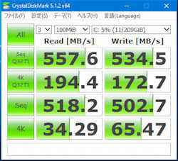パソコンに内蔵して、SATA3.0(600Mbps) に接続し測定 - 2.5インチ SSD Samsung 250GB SATA3.0(RAPIDをON)