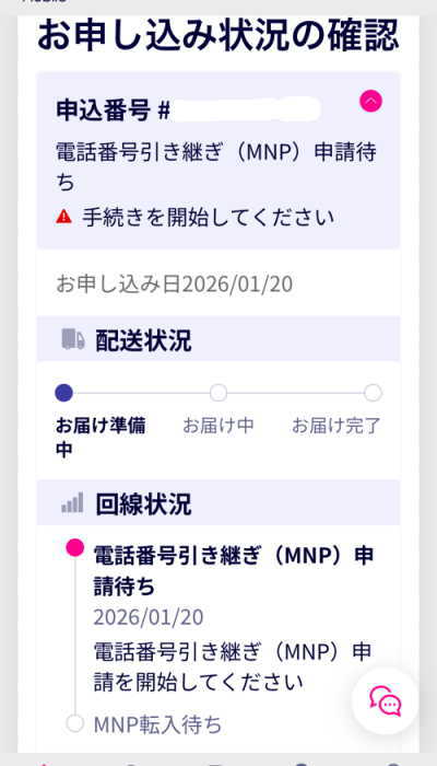 - 電話番号引継ぎ(MNP)で申込み時、状況確認の表示がわかりづらい件