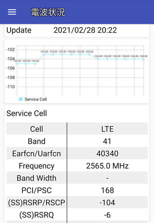 アプリ「Mobile Cell Check」を使用すると、実際に通信しているスマホが、どのBandを掴んで通信しているか確認できます。