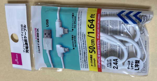 - 百円均一のスマホ充電・通信ケーブル(iPhone Android 兼用)