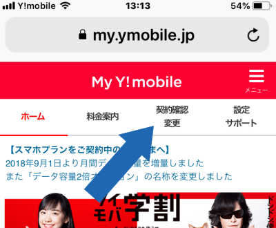 - 必ず前半の「My Y!mobile」での作業を終わらせておきます