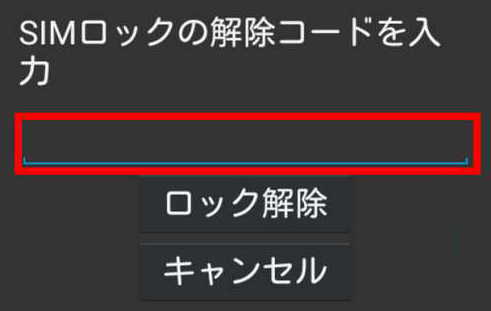 - 「SIMロック解除コード入力画面」に先ほど入手した「SIMロック解除コード」を入力します