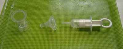 口の横から流動食を食べさせるために、以前シェルティの「リカ」の介護の時に利用した、流動食を与える為の介護犬用の器具を再度購入予定。