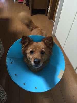 立ち上がる時右の後足が痛そうで「キャイーン」と悲鳴を上げる。しかし歩く時は痛そうに見えず散歩にも行きたがる。