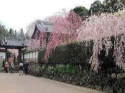 満開になると、樹齢300年とされる珍しい種の小糸しだれ桜2本と、紅しだれ桜30本が咲き誇るらしい。