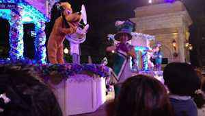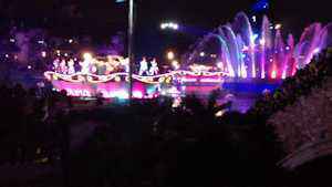 | 続けてファンタズミックも良い場所で観賞できました。こちらは映像と音楽と花火と大掛かりな噴水や仕掛けなど迫力もありました。 | ![]() |