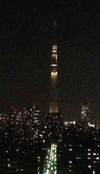 ホテルの客室の窓からスカイツリーが見える部屋があるというPRを見ていましたが、割安な新幹線パックなので期待していませんでした。しかし部屋のカーテンを開けると真正面にスカイツリーが見えました。これもラッキー・・・。