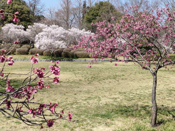 (左奥がコヒガン桜、右側がカンヒ桜)