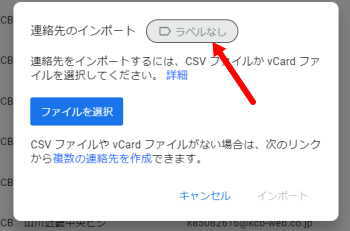- 矢印の部分をクリックしてインポート先のラベルをクリックしてチェックを付け選択します。再度クリックするとチェックが消えます
