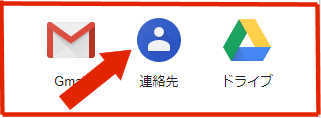- パソコンの Google Chrome にログインし、下記画像の・がさいころの目ように並んだアイコンをタップし、表示された「連絡先」をクリックして起動します。