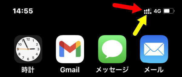 - ホーム画面の右上にUQmobileと楽天mobileの信号強度のグラフが表示されています。