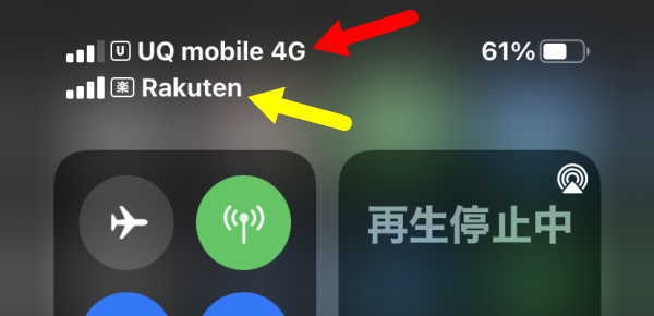 nanoSIMにUQmobile、eSIMに楽天mobileをセットして使用した時、画面に表示される信号をスクリーンショットしてみました。