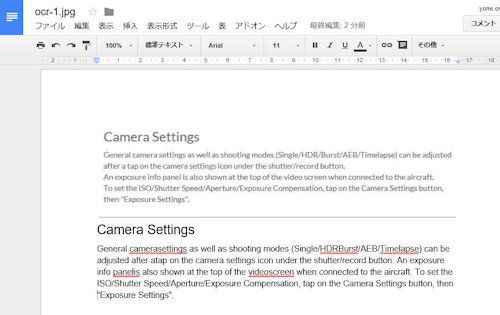 4.うまく認識されるとGoogle Docsに下記の通り画像と共に表示されます。