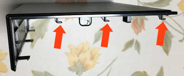 - カバーが前方に3~4mmずれたら、上面カバーの後部を2cmぐらい持ち上げ、さらに前方にずらすと外れます