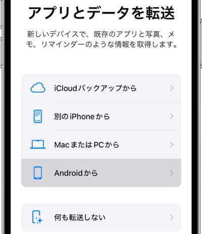 - 「アプリとデータを転送」画面で、「Android から」をタップします