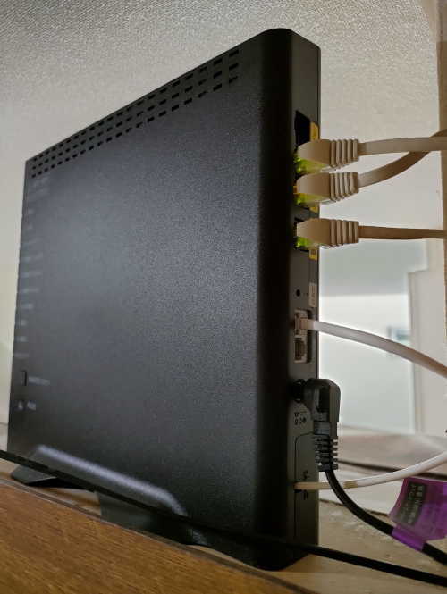 背面に1000GbyteのLAN端子が4個と電話の端子が付いています