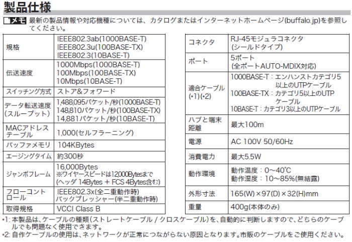 - Buffalo LSW3-GT-5NS(5ポート)