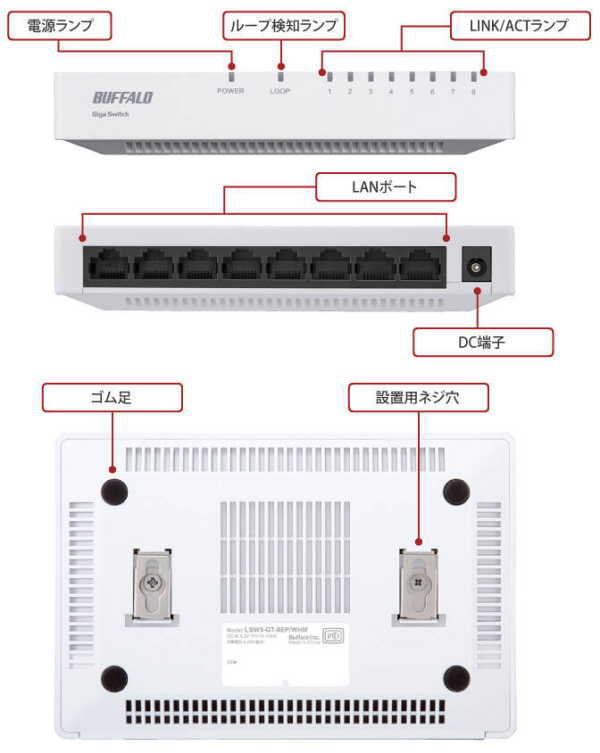 - Buffalo LSW5-GT-8EP/WHM(8ポート)