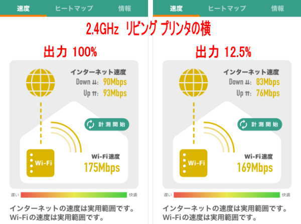 下記の測定のようにほとんど影響がありませんでした - 測定に使用したアプリは、IO DATA の Wi-Fiミレル です