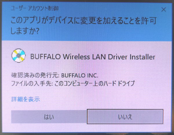 下記の画面が出た時は、「いいえ」をクリックします