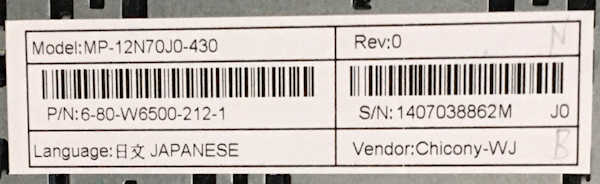 将来キーボードの交換があるかもしれないので型番を写しておきました。
