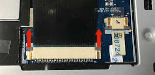 キーボードが本体とつながっているフラットケーブルを抜きます。