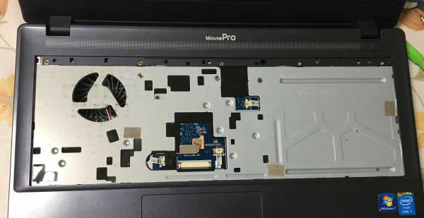 キーボードを取り外すと、外周以外キーボードの中央部分は全く固定されていません。