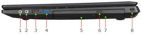 ③VGA ポート、④LAN端子、⑤eSATA ポート(USB2.0兼用)