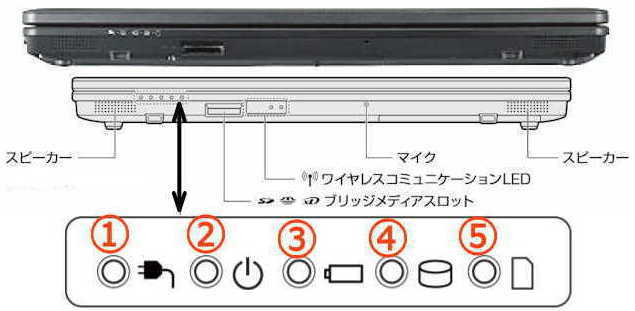 システムインジケーター(前面の左側にある5個のLED)