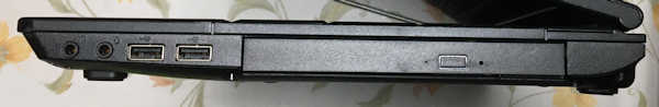 左端から、スピーカー/マイク、USB2.0 2個、HDDを取り付けた変換マウンタ
