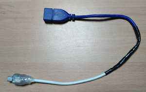 | 改造したMicroUSBケーブルと、USBのメス端子を接続し30cmぐらいのOTG対応変換コードにしました。 接続は半田付けで確実に行い、熱収縮チューブでカバーしました。 手持ちのケーブル2本を使って製作しましたが、通販で購入しても200~400円ぐらいで購入できますので、余ったケーブルと時間が無い人は購入した方が得だと思います。 |
