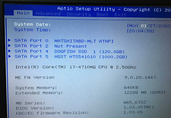 - BIOS起動時の画面には、SATA Port に接続されたデバイスが表示されます