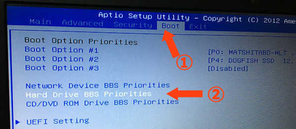 - 「Hard Drive BBS Priorities」②を選択しリターンキー