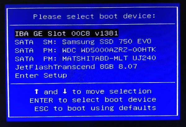この方法はUSB接続のCD/DVDドライブやUSBフロッピーからの起動にも使えます。